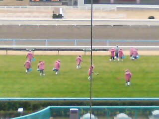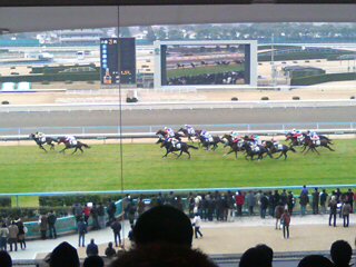 ▼とりあえず外に出て見物。寒い。ファンファーレが鳴って皆が競馬新聞を回す姿を予想していたのですが、そんなこともなく。またレース後にハズレ馬券を破いて撒こうと思っていたのですが、そんな空気でもないようです。がっくし。