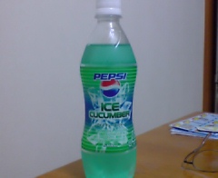 さて今日は久しぶりにコミからの電話により、ホッシーも呼んで夕食。コミからは、以前からずっと飲んでみたかった「ペプシアイスキューカンバー」をもらいました。で、味は…メロン主体の中、うすーいキュウリの後味が。どこと無く甘みのないスイカを食べてる気分。