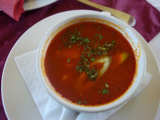 ▼腹が減ったら食堂車へ。シュニッツェル(所謂ミラノ風カツレツ)やブラートカルトッフェル(所謂ジャーマンポテト)など、超定番のドイツ料理ばっかりでヘドが出ますが、このグラーシュだけはまあまあ。