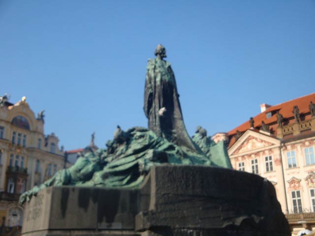 ▼広場のど真ん中には、あのフスの銅像があります。受験世界史ではフス=火刑というイメージが強すぎて、どんな人物だったかが結構あやふやだったりしますが、チェコではカトリック=神聖ローマからの支配脱却のシンボルとなったことから(フス戦争)英雄視されております。
