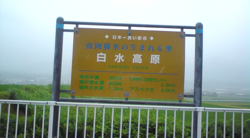 ▼…と書けばこのサイトの読者ならピンと来るはず、「南阿蘇水の生まれる里白水高原駅」です。わたしが高校生の頃は、日本一長い駅名になったということで、あれやこれやのクイズ番組で出題され倒した記憶があります。